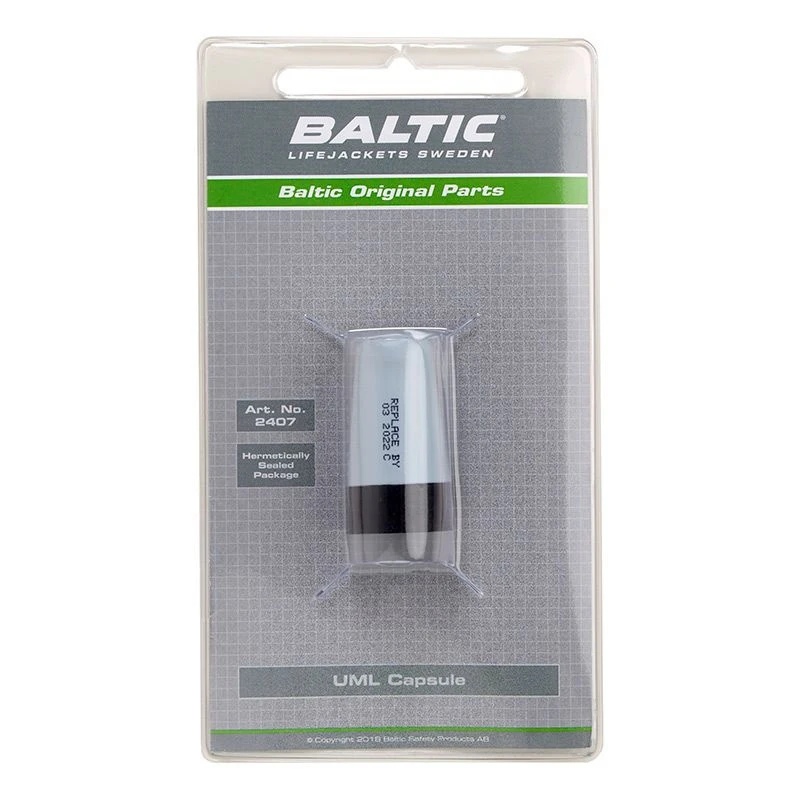Inside the lifejacket on the inflatable lung is printed information on which trigger is suitable for your lifejacket. E.g. “USE ONLY BALTIC Capsule UML #2407.