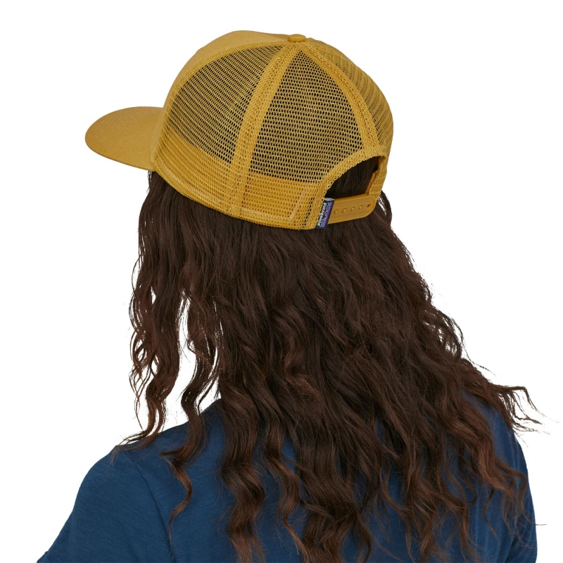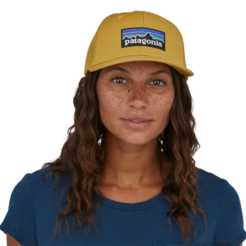 Patagonia P-6 Logo Trucker Hat, nu met een rand gemaakt met Bureo’s volledig traceerbare NetPlus materiaal dat gemaakt is van 100% gerecyclede visnetten.