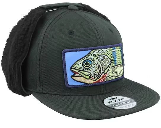 Echt leuke oorflap hoed van Skillfish met een baars patch.